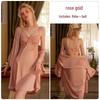 Gönnen Sie sich gemütliche Eleganz mit diesem Damen Herbst/Winter Casual Camisole Nachthemd und Bequemer Morgenmantel Homewear Set. Das Nachthemd aus luxuriösem Satin verfügt über ein eingebautes Brustpolster für zusätzlichen Komfort und Halt.. Der dazugehörige Überwurf, ebenfalls aus Satin gefertigt, sorgt für Wärme und Entspannung und macht dieses Set perfekt zum Faulenzen zu Hause in den kühleren Monaten.. Genießen Sie das weiche, seidige Gefühl auf Ihrer Haut und erleben Sie ultimativen Komfort und Stil bei jedem Tragen.