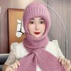 Hat women's autumn and winter warm hat scarf integrated winter hat women's plush wool hat buckle ear protector knitted hat