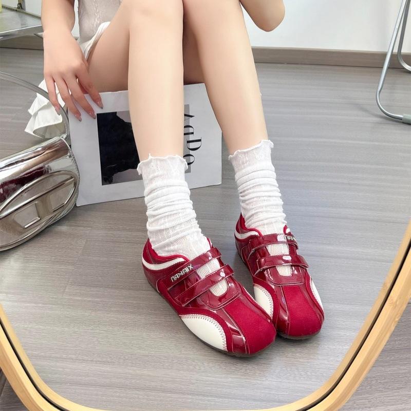 2025 neue französische Nische weiche Sohle Temperament runder Kopf Klettverschluss zweireihiger Gürtel Mary Jane Schuhe Damen rot deutsches Training