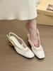 Moderne Heldin! Temperament quadratischer Kopf gewebte Tasche Kopf hinten leer Sandalen Damen Frühling 2025 Kristallabsatz einzelne Schuhe