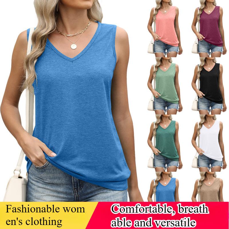 Europäischer und amerikanischer Damen V-Ausschnitt einfarbige Weste lockeres ärmelloses T-Shirt lässiges Top
