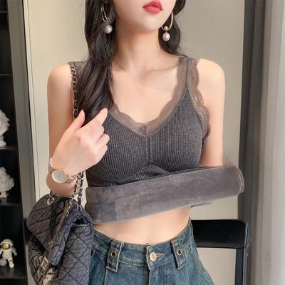 Damen Weste V-Ausschnitt Ärmellos Gepolstert Unterwäsche Weste Einfarbig Spitzenbesatz Elastischer Saum Weste Winter Alltagskleidung