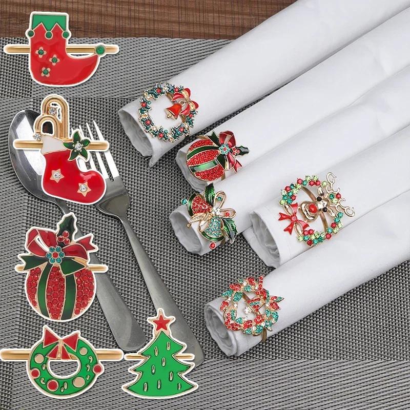 Weihnachts-Serviettenring Metall Weihnachtsglocke Elch Serviettenhalter Blumenkranzringe Hochzeitsbankett Hotel Tischdekoration und Accessoire