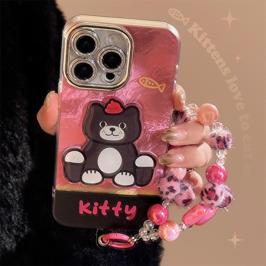 Süßes und Cooles Mädchen Dreidimensionale Katze Geeignet für 17promax Handyhülle Apple IPhone 16 Leopardenmuster Kette 13 Hart 14