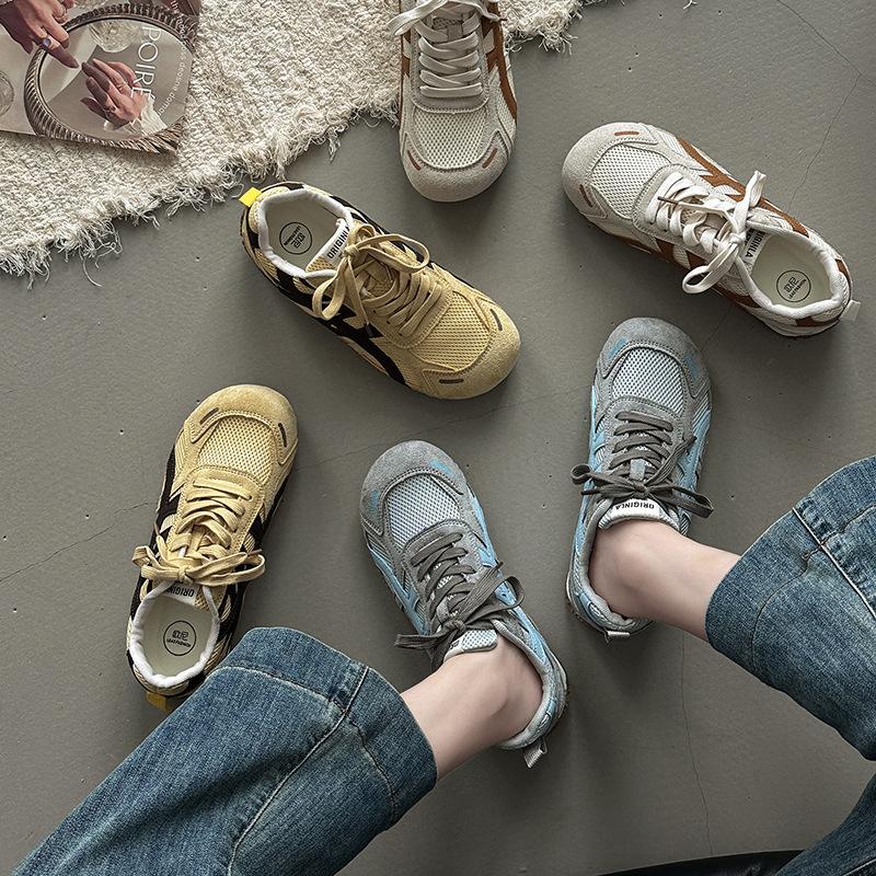 Mode runder Kopf atmungsaktiv dicke Sohle lässige moralische Trainingsschuhe Damen Frühling und Sommer Retro Farbabstimmung Schnürung Mesh leicht Forrest