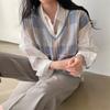 Contrast Patchwork Women's Knitted Vest Autumn New Style V-Neck Plaid Jumper Retro Loose Sweater Vests