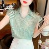 Damen Gestreiftes Hemd Sommer Elegant Schlankmachendes Design Chiffon Kurzarmhemd