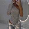 Frühlingsglänzende Pailletten-Bodysuits Sexy Damen Ausgeschnitten Einteiliger Romper Jumpsuit Damen Einseitiges Röhrentop Playsuit
