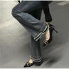 High Heels Damen 2025 Frühling und Herbst neues feines Absatzdesign Französische Nische Metallkette spitze Zehen flacher Ausschnitt Einzelne Schuhe Damen