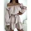 2025 European and American Fashion Casual Solid off-Shoulder Waist Hugging One piece Dress Women clothing