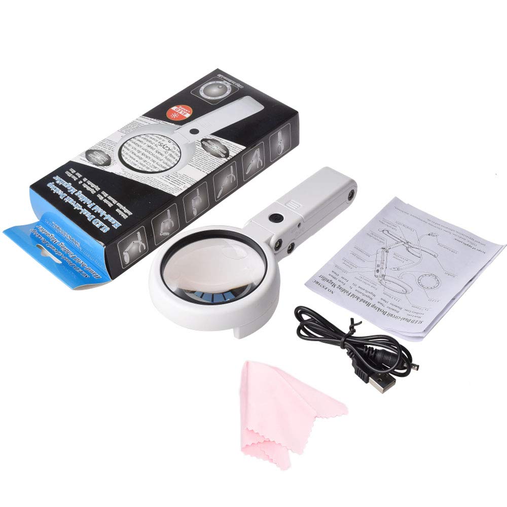 5x 11x Folding Magnifying Glass for Repair with 8 LED Lights and Stand Handheld Desk Magnifier Potable for Seniors Reading Lamp