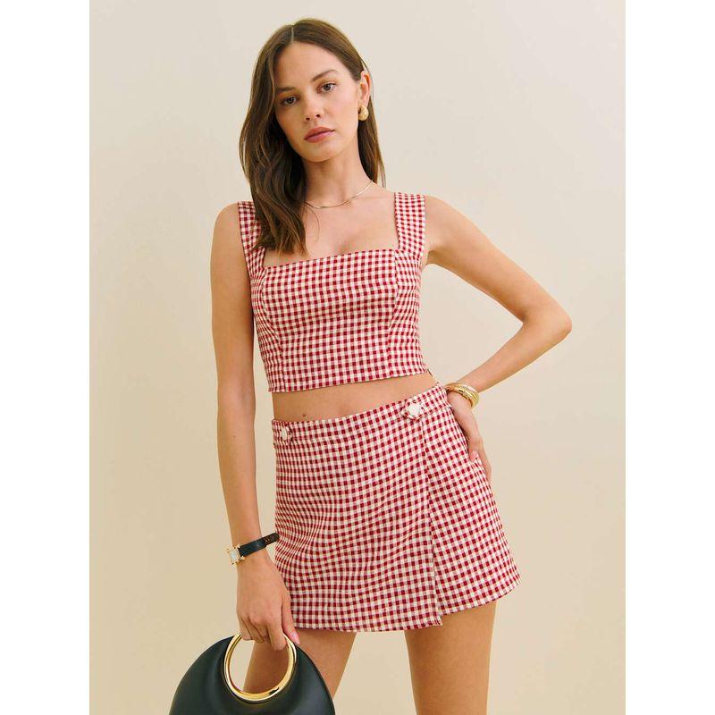 Plum Red Wine French style Retro Plaid Sexy Gyaru Short Sling Top + Culottes Versatile Slimming Two-piece Set