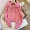 Damen Frühling Herbst Weiche Kapuzenstrickjacke Damen Innen Langarmtop