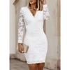 Princess Figure American Sexy Sexy White V-Collar Lace Long Sleeves Silm Hip Bag Holiday Dress