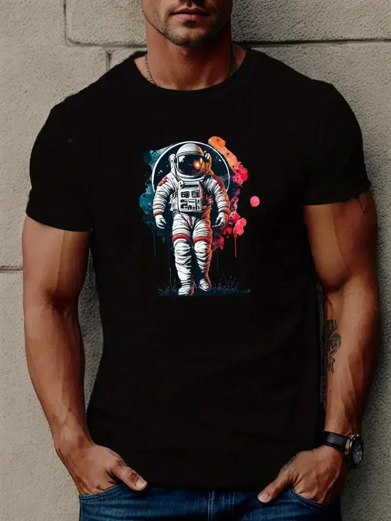 Unisex Astronaut Mond Stern Print Kurzarm T-Shirt, Rundhals T-Shirt Freizeitkleidung, Sommerurlaubsgeschenk