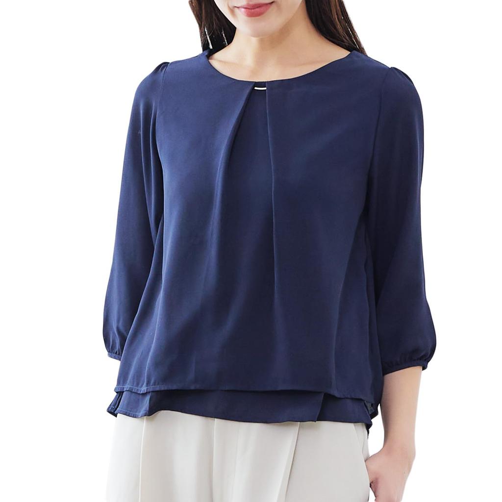 RIRIYĀNO Damen Chiffon Bluse/Hemd, 3/4 Ärmel, Anzug-Innenfutter, Knitterarm, Schnelltrocknend, für Pendler und Bürogebrauch (Größe L, Marineblau)