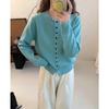 Simple temperament round neck single-breasted knitted cardigan women's soft waxy skin-friendly long-sleeved versatile knitted cardigan