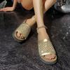 Große Größe dicksohlige Strass-Flachsohlen-Sandalen für Damen Sommer neue Sandalen für Damen