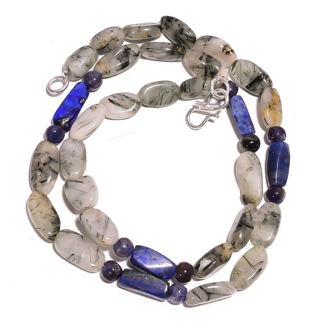 Natur Rutilquarz Lapislazuli Iolith Edelsteinperlen Halskette 17" UB-3134 UB-3134