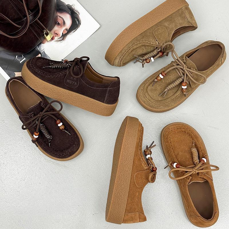 Damen Herbst neu erste Schicht Kuhveloursleder Damenschuhe dicksohlige matte vielseitige Känguru-Schuhe