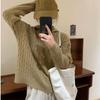 Autumn and winter new retro twist hooded pullover sweater women's simple and versatile loose lazy wind knitted sweater tide