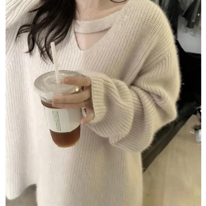 Design-Sinn Mode V-Ausschnitt Strickpullover Oberteil Damen Herbst und Winter Neu Weich Wachsig Locker Fauler Stil Pullover