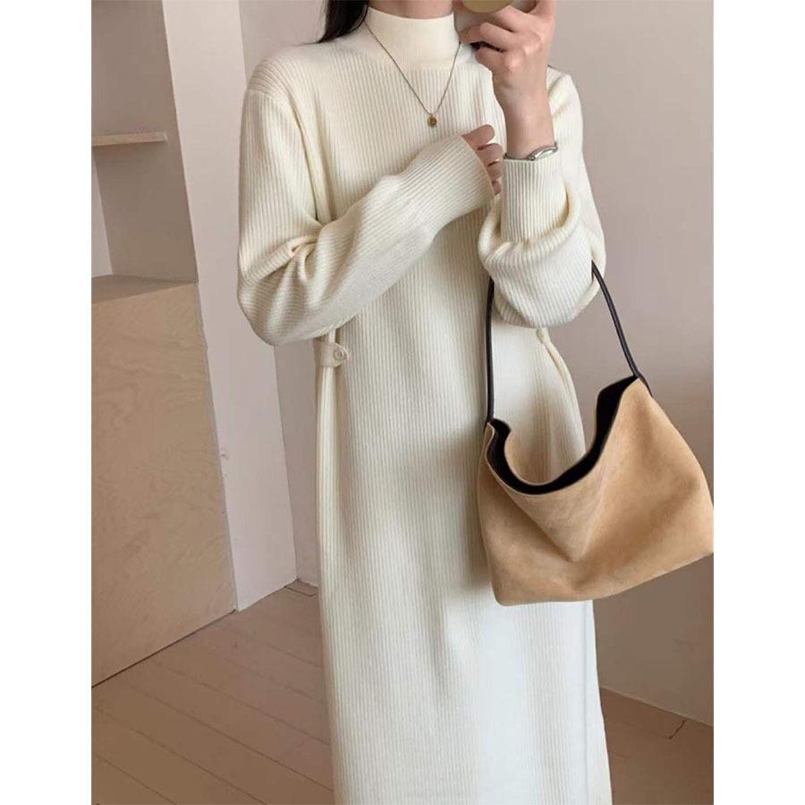 Solid color semi-turtleneck sweater skirt women's autumn and winter lazy inside long over the knee loose new bottoming knitted dress