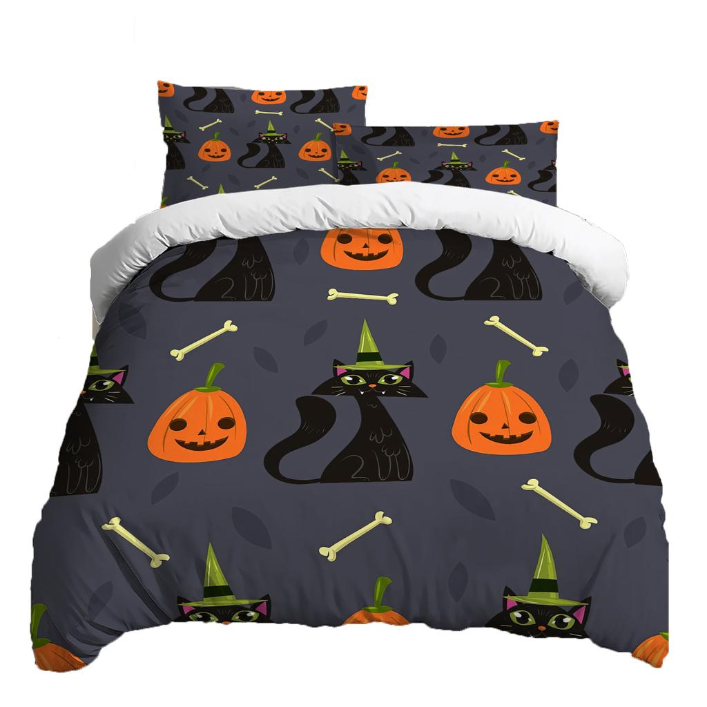 Halloween Dreiteiliges Bettwäscheset Bettbezug Kissenbezug Gebürsteter Stoff Verdickt