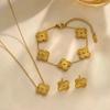 3-teiliges Titanstahl nicht verblassendes doppelseitiges Kleeblatt Halskette Armband Ohrring Set