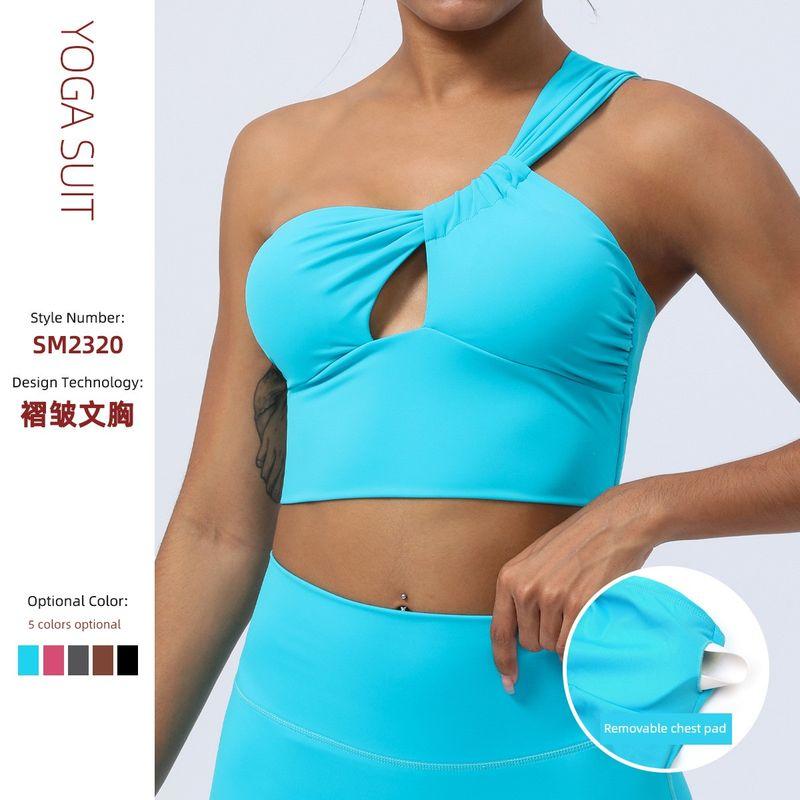 Export Ruched Cut Out Yoga Clothes One Shoulder Sports Intimates Running Training Quick-Drying Fitness Vest with Chest Pad Tops