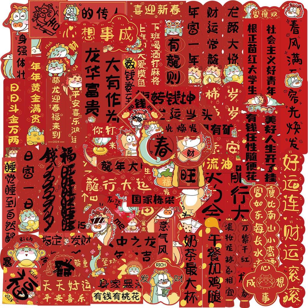 Various 88 New Year's Dragon Year Couplets Graffiti Stickers Guitar Notebook Suitcase DIY Waterproof Stickers