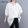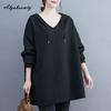 Koreanischer Stil Herbst Winter Damen Übergröße Kapuzenpullover mit Kapuze Weiß Schwarz Grau Übergroßer Pullover Lässig Locker Basic Damen Sweatshirt