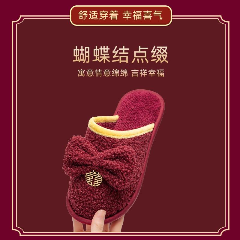 Pantoffeln Hochzeit neues Hochzeitspaar festlich bordeauxrot Braut Aussteuer leichter Luxus Hanf flauschige Pantoffeln