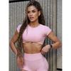 Irongirl Yoga Short Sleeve Women's High Elastic Tight Slim Looking Sports Tops Sexy Short Shoulder Workout Clothes T-shirt