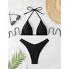 Damen String Bikini Sexy Einfarbig Weiß/Schwarz/Kaffee Neckholder Badeanzug zum Schnüren Brasilianischer Badeanzug 2025 Neu Doppellagiger Strandbekleidung