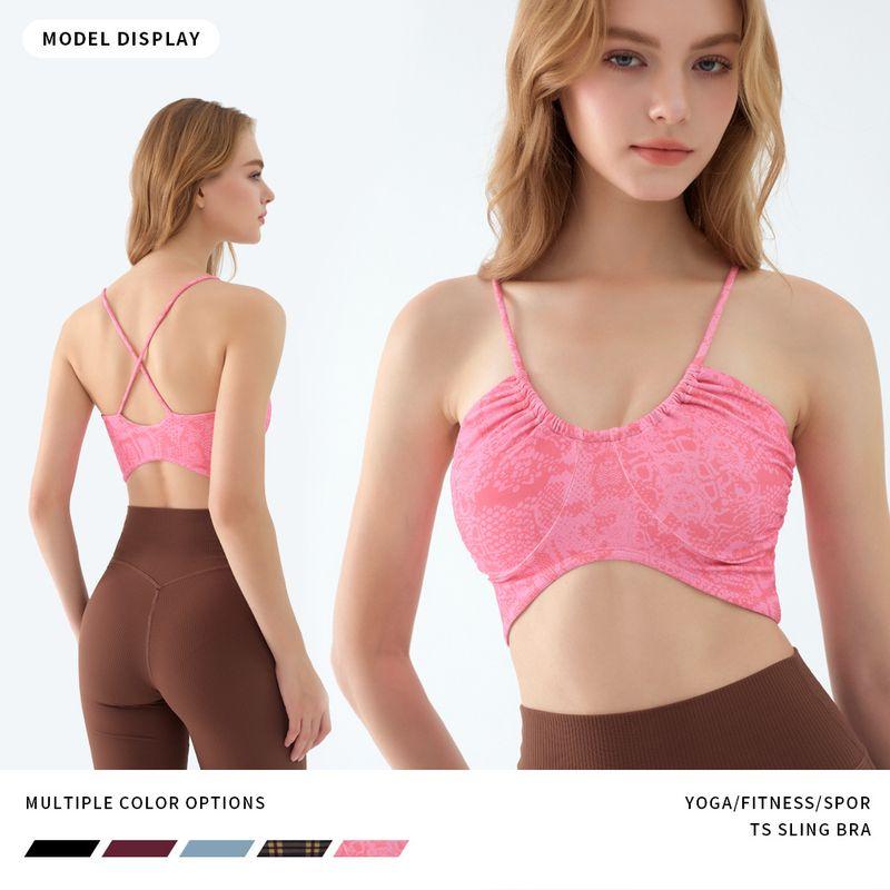 Foreign Trade Integrated Thin Drawstring Sports Underwear Women Yoga Beauty Back Cami Outer Wear Print Fitness Bra Top
