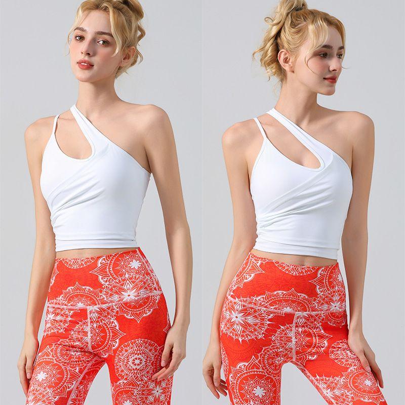 Foreign Trade New Summer Cross-Border Sexy Sloping Shoulder Yoga Vest Sports Running Fitness Yoga Clothes Set With Chest Pad