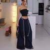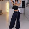 Akiyo Studio Western Style Gyaru Retro Wide Leg Contrast Color Ribbon Jeans Slimming Trousers Foot Covering Lace
