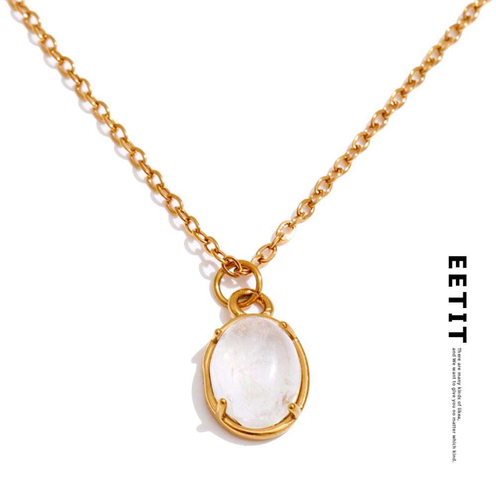 Eetit Simple Stainless Steel Natural Stone Oval Pendant Necklace Popular Fashion Collar Jewelry Hypoallergenic