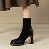 Herbst- und Winter-Retro-Kurzstiefel mit dickem Absatz für Damen, Spleiß-Wasserdicht-Plateau-Elastik-Dünnstiefel, Kurzstiefel mit hohem Absatz