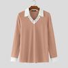 INCERUN Herbst Herren Spitze Revers V-Ausschnitt Langarm Rippstrick Casual Pullover Tops