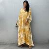 Ramadan-Boho-Kaftan-Kleid in Übergröße für Damen, golden besticktes Maxi-Überzugskleid mit Fledermausärmeln und eingekerbtem Ausschnitt