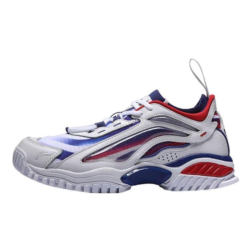Li Ning Aurora Skywalker Paris Fashion Week Serie Laufsteg-Stil Rutschfest Leicht Niedrig geschnittene Freizeitschuhe Damen Freizeitschuhe Weiß Blau Rot AGLN242-2
