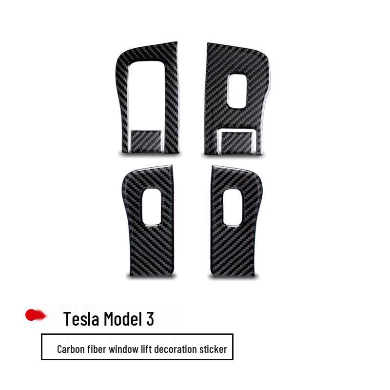 Echter Kohlefaser Fensterheberpaneel Aufkleber für Tesla Model 3 Innenraum