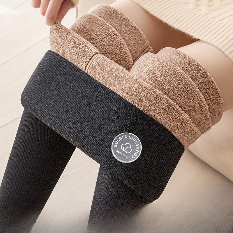 Fleece Lined Leggings Women Outdoor Wear Winter Gray High Waist Thick Thermal Pants Northeast Extra Warm Cotton Pants