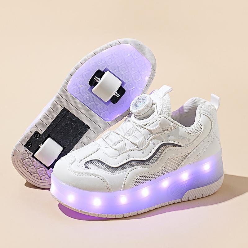 Charging LED Light up Roller Skates Walk Shoes with Wheels Rotation Button for Children And Adults Single Row Insole Game