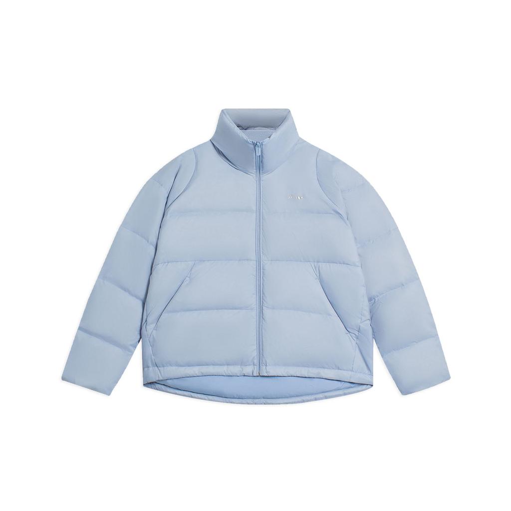 Li Ning Fitness Series Logo-Print Lockerer Schnitt Reißverschluss Stehkragen Warme Daunenjacke Damen Oberbekleidung Soft-Grau-Blau AYMS028-3