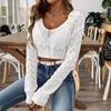 Damen Kurzoberteile für Damen Frühling und Herbst Neu Revers Polokragen Aushöhlung Nabel Pullover