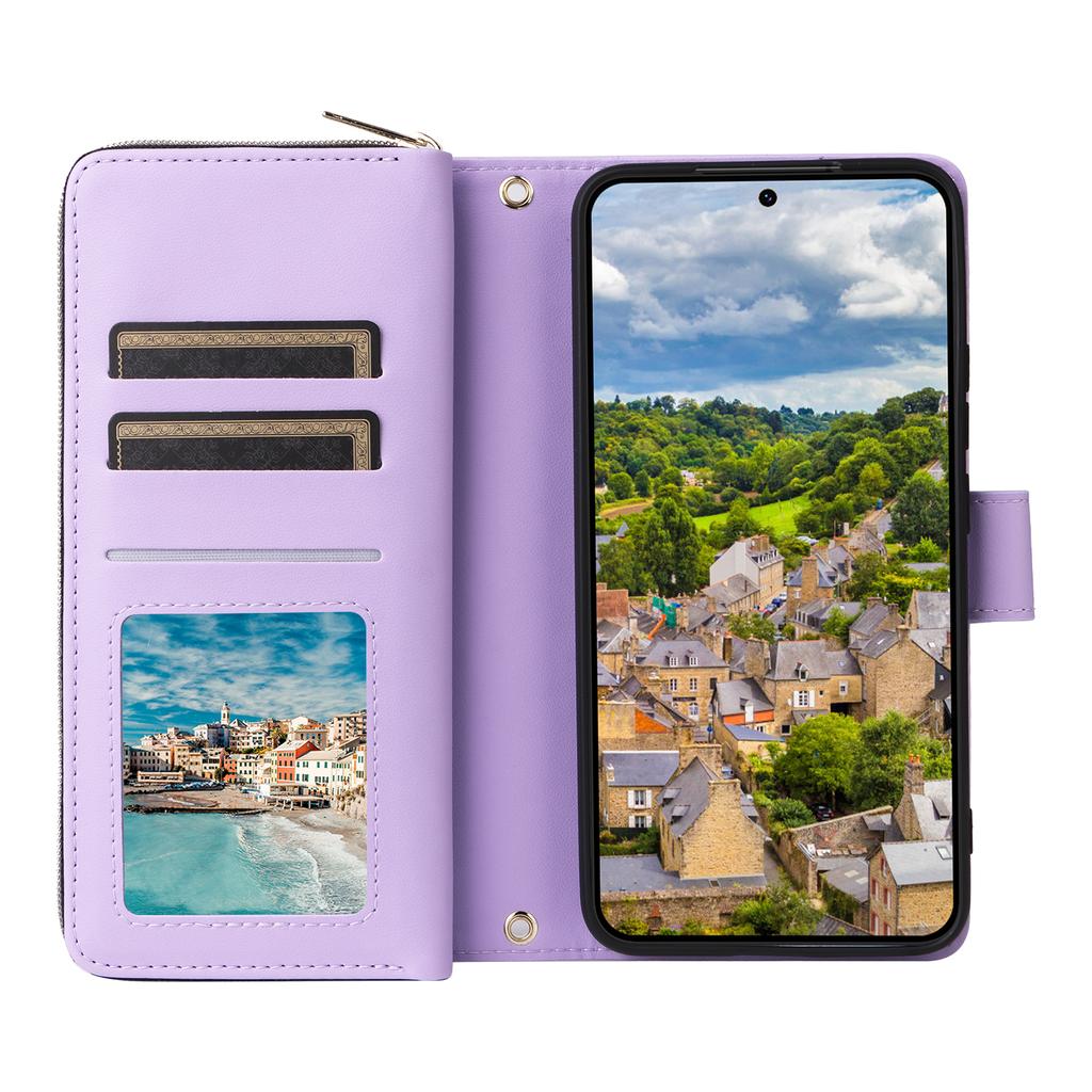 R20 Für Samsung Galaxy S22 5G Hülle PU Leder Reißverschluss Handyhülle mit Tragebändern