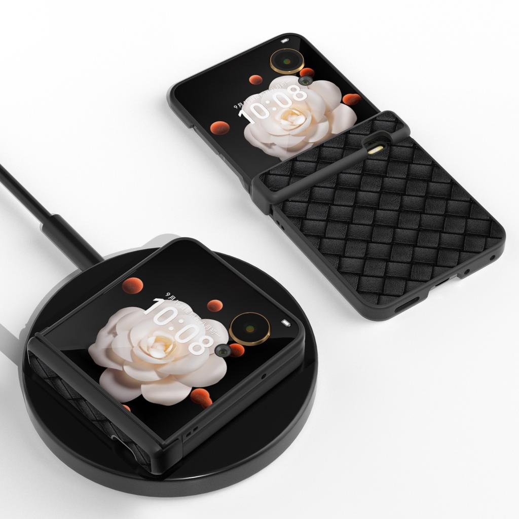 Für Honor Magic V Flip 5G Hülle Scharnierschutz Gewebestruktur Leder+PC Handyhülle